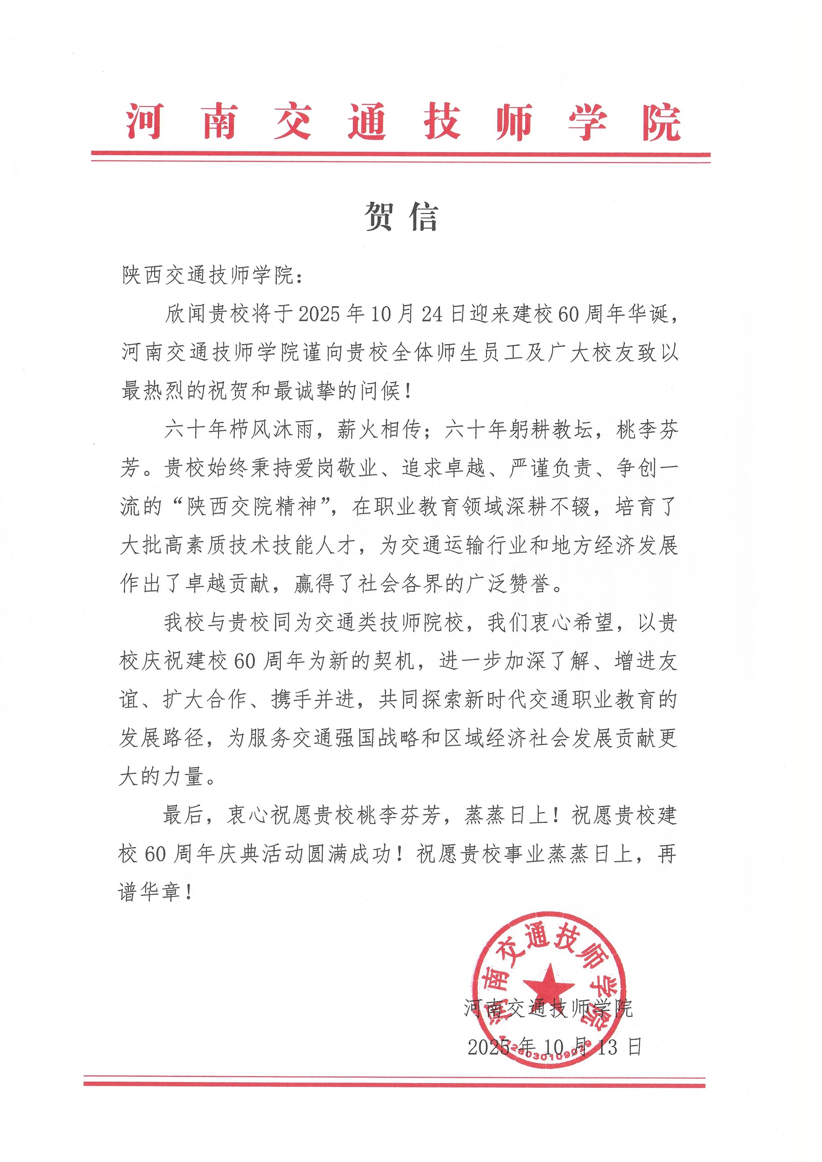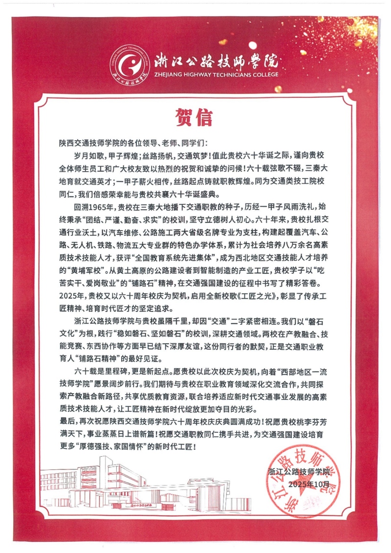 下一页:贺信纷至!陕西交通技师学院建校60周年贺信集锦(一)
