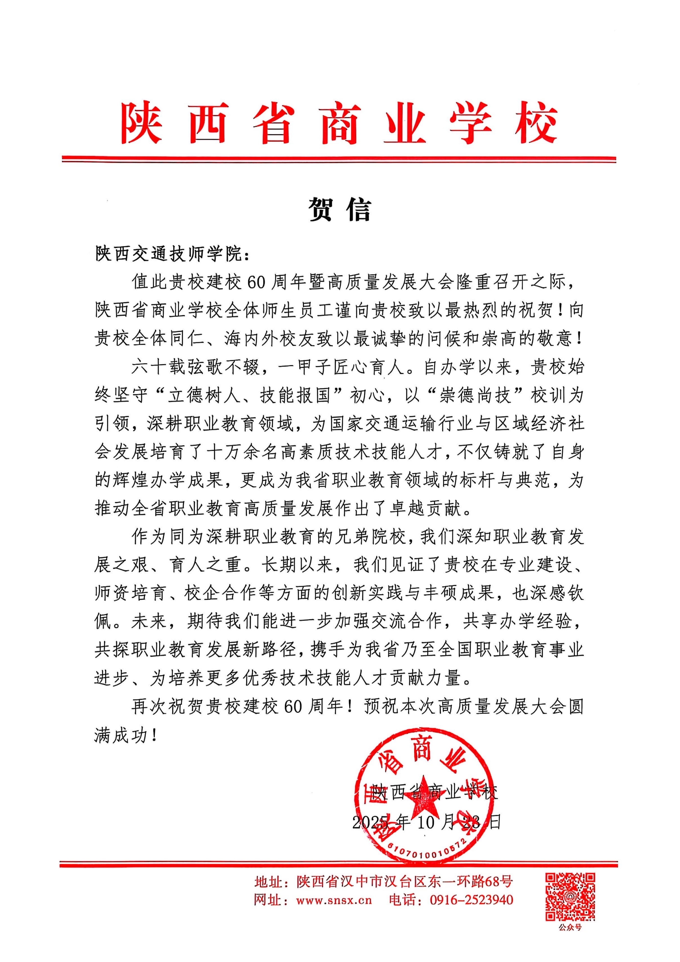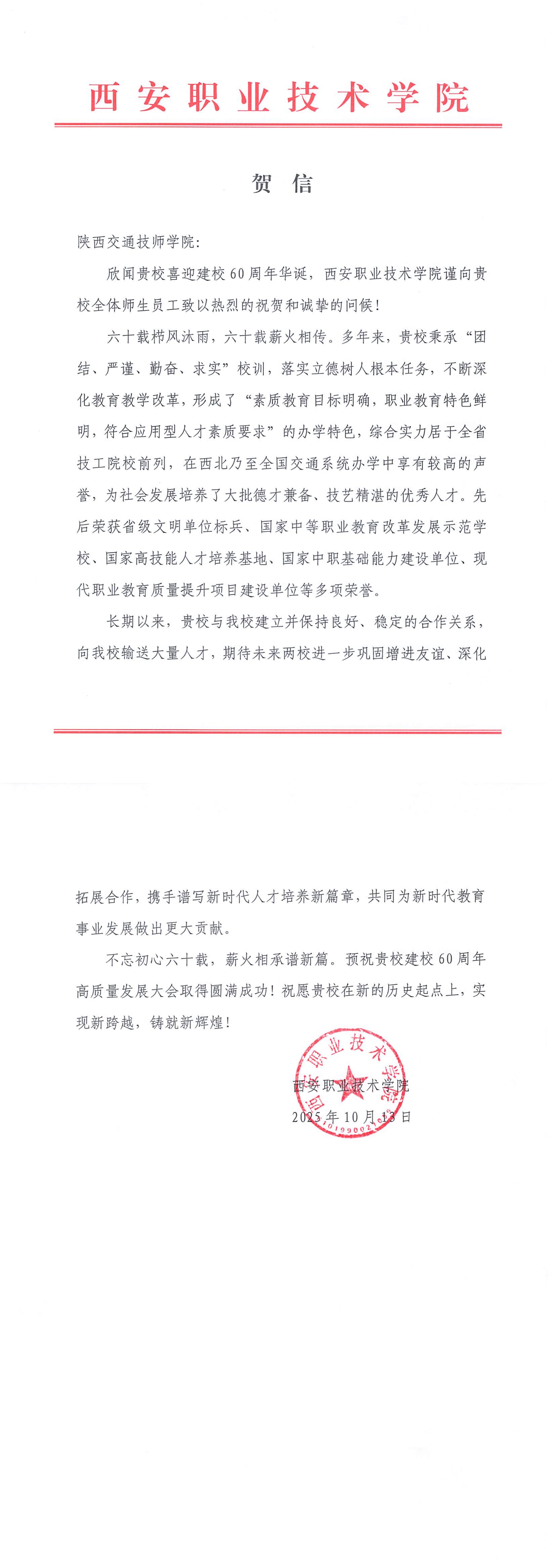 贺信纷至!陕西交通技师学院建校60周年贺信集锦(二)
