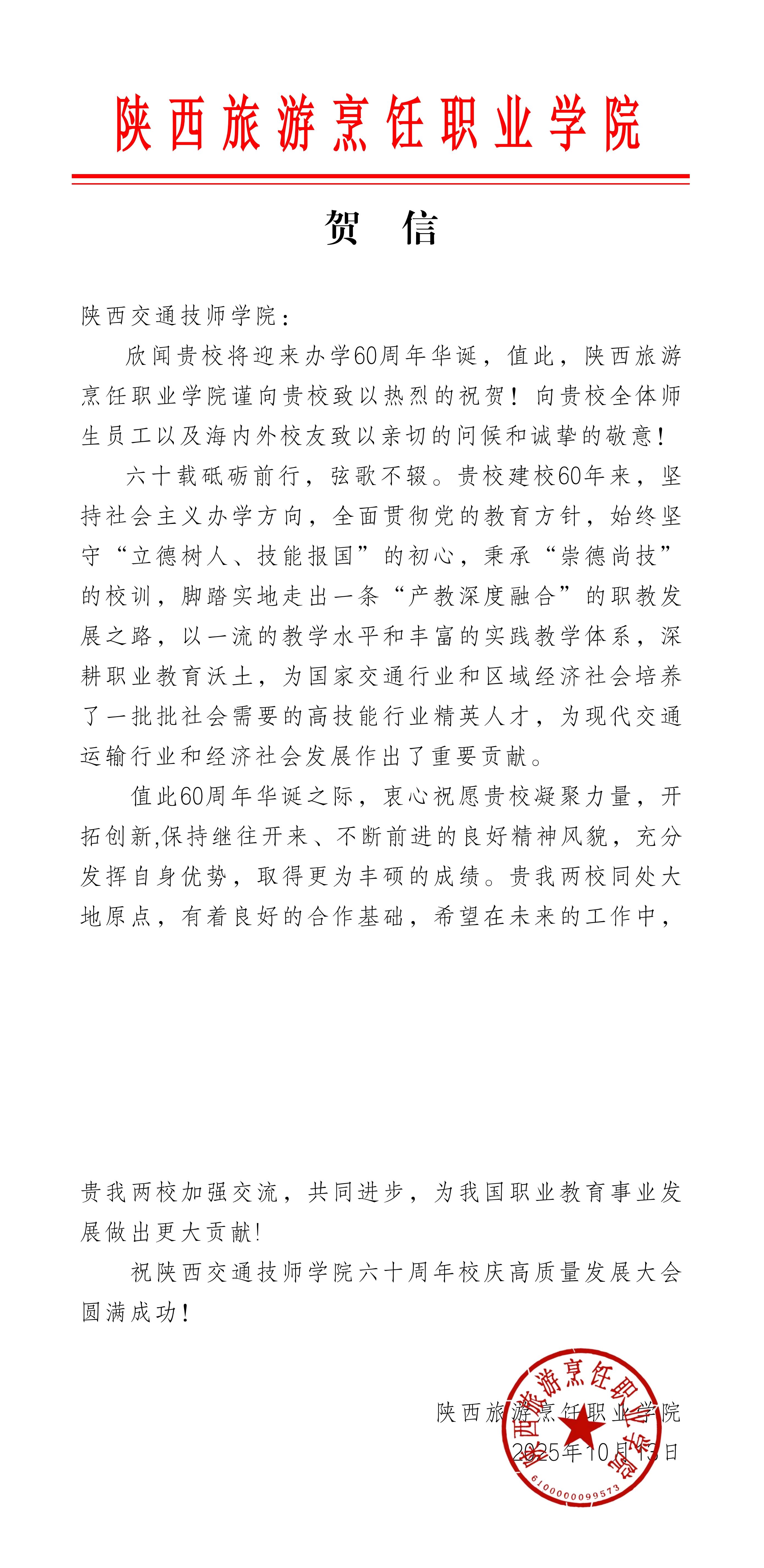 贺信纷至!陕西交通技师学院建校60周年贺信集锦(四)