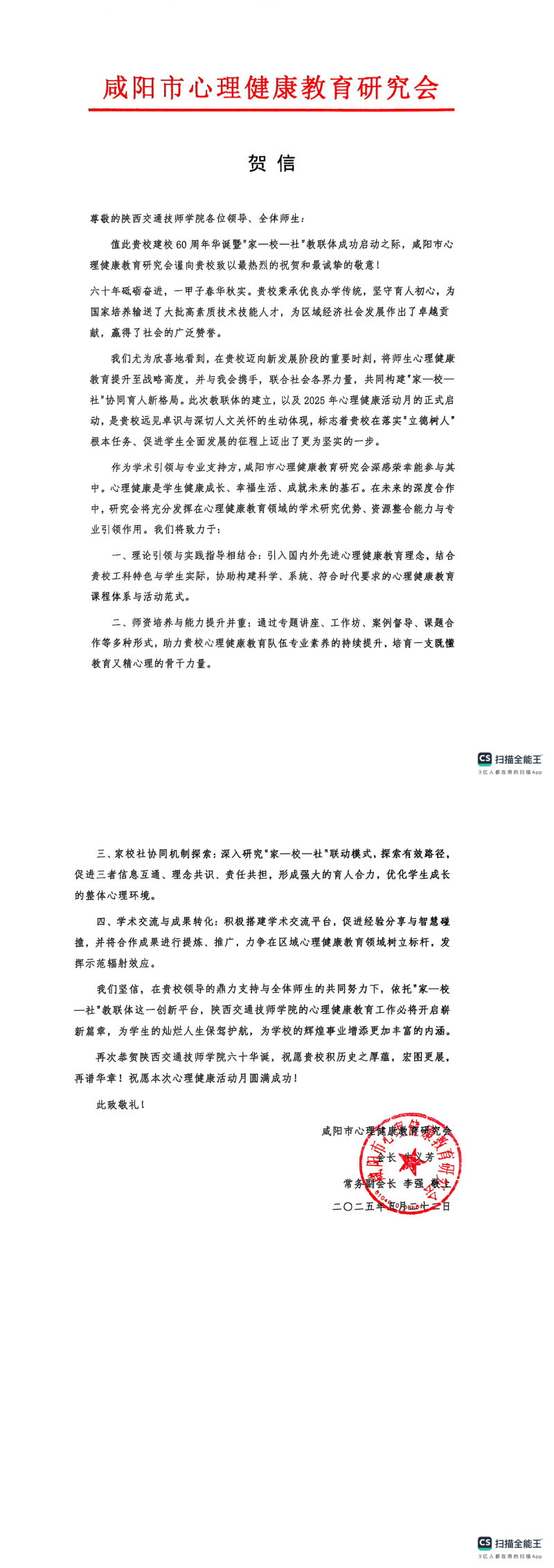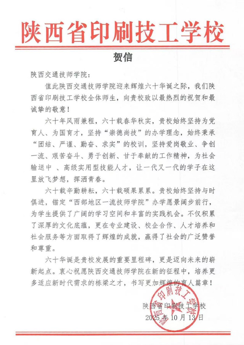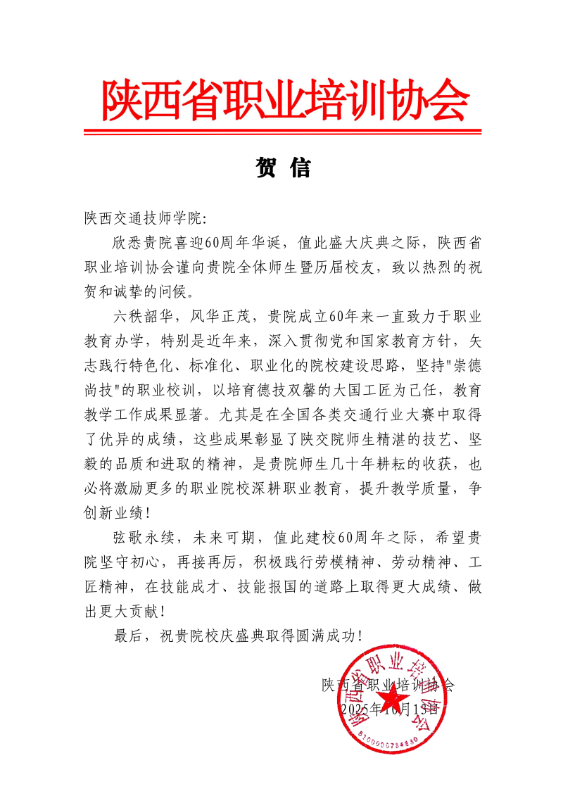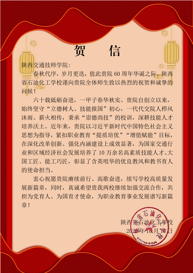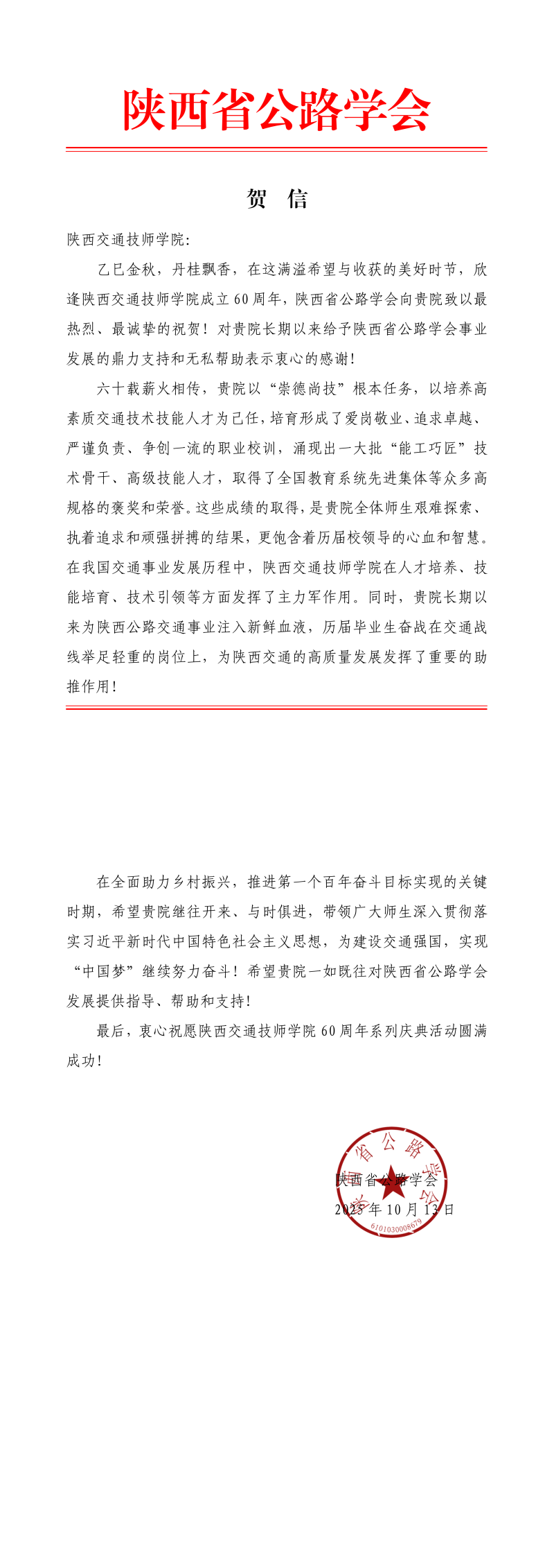 贺信纷至!陕西交通技师学院建校60周年贺信集锦(七)