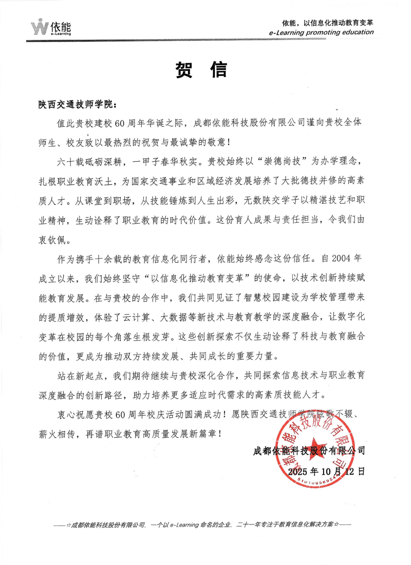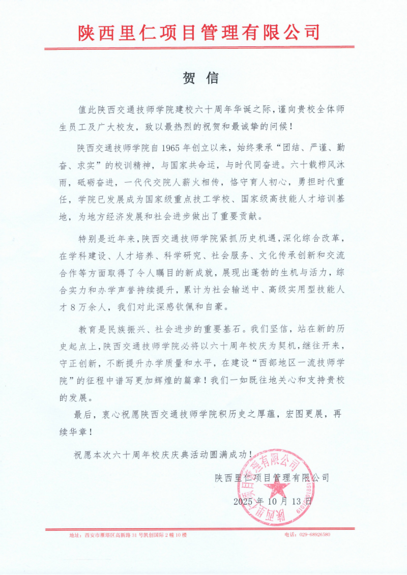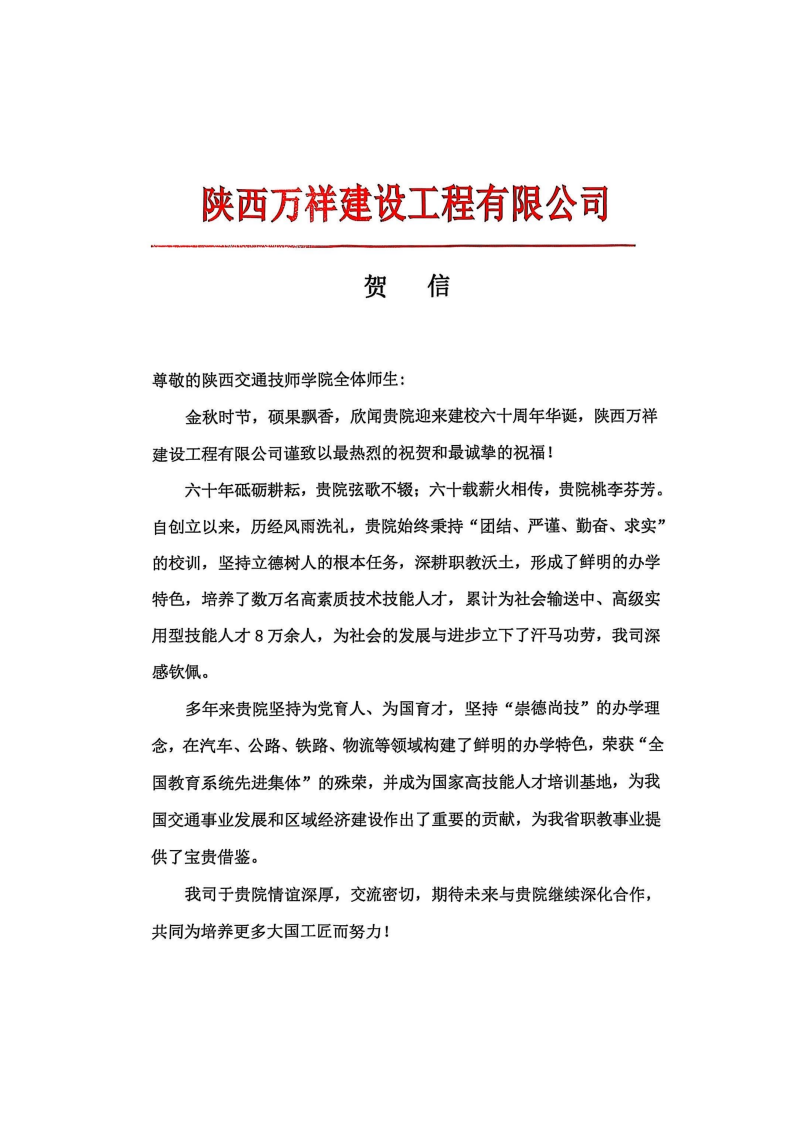 贺信纷至!陕西交通技师学院建校60周年贺信集锦(十一)