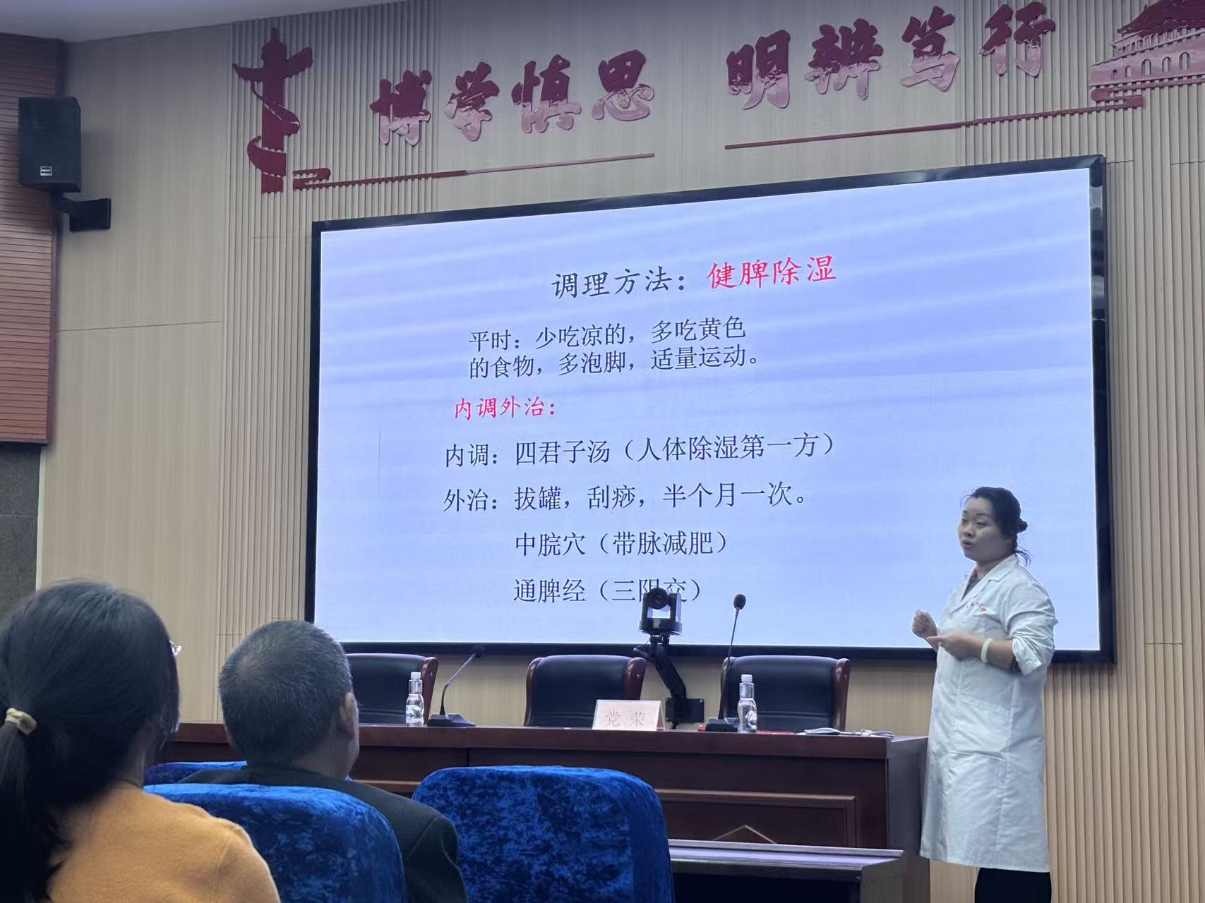 11月27日下午,我院在电教中心一楼视频会议室举办了以“健康生活,科学养生——常见疾病预防与日常保健”为主题的健康知识讲座。讲座特邀健康管理专家、高级诊疗师党荣医生担任主讲。党医生围绕“三高”预防、职场亚健康改善、颈肩腰腿保健操及心理健康调适等内容,进行了深入浅出的讲解,帮助教职工掌握实用的健康知识和自我保健方法。讲座现场秩序井然,教职工认真聆听、积极互动,反响热烈。