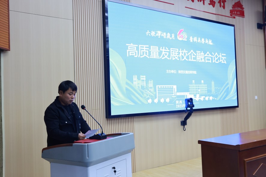 10月25日上午,陕西交通技师学院“校企同心忆峥嵘,聚力共启新征程”校企融合论坛在数智赛训中心一楼会议室成功举办。作为60年校庆系列重要活动之一,论坛既是对学院一甲子办学成果的深情回望,更是汇聚校企智慧、共绘发展蓝图的关键盛会。本次论坛由学院公路系副主任唐军伟主持,公路系、汽车系师生及企业代表共计200余人参加。