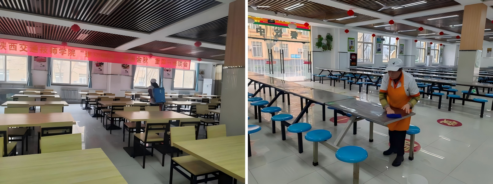 环境卫生整治同步推进,后勤保洁团队全方位开展校园清洁行动,对教学楼、宿舍楼、食堂、图书馆、操场等公共区域进行彻底清扫、消毒,重点清理卫生死角,对教室、宿舍进行通风换气和全面消杀,着力改善校园环境卫生面貌,让师生返校就能感受到干净、整洁、温馨的校园氛围。