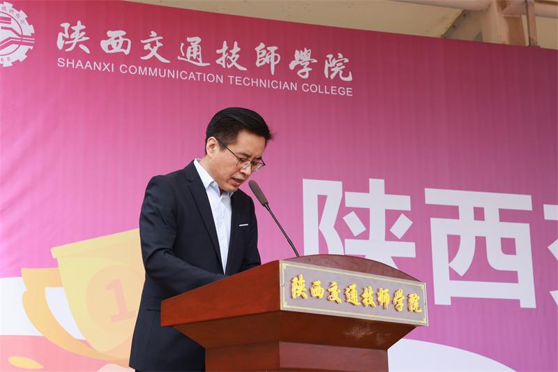 在全场热烈的掌声中,学院党委书记张鹏宣布:“陕西交通技师学院第三十六届田径运动会——开幕!”
