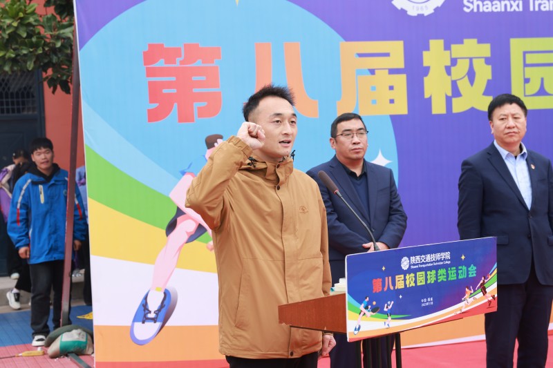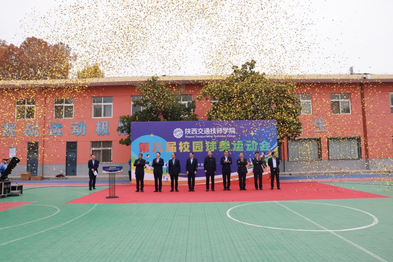 全场最为激动人心的时刻随之到来——在所有人期待的目光中,学院党委书记、院长杜建忠朗声宣布:“陕西交通技师学院第八届校园球类运动会,现在开幕!”话音刚落,数道金色彩带自会场两侧喷薄而出,如绚丽的虹桥划破湛蓝的天空,在阳光下熠熠生辉。掌声、欢呼声与漫天飞舞的金色交织在一起,将现场的热情推向顶点。