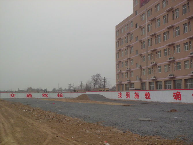 为了增强驾驶培训考试的针对性,提升驾校培训工作水平,强化学员实际操作技能。开学后,后勤处按照学院工作要求以及驾校提出的建设方案,认真组织实施。该场地占地6000多平米,设有直道、弯道、坡道、单边桥、绕饼、倒库等多个项目,场地周围墙体配有醒目的车辆行驶警示图标和标语等。目前项目正在加紧施工, 该场地的建成,为提高学员面对目前高难度考试的应考技能,提供了有力的硬件资源。驾校训练场预计3月10日正式投入使用。