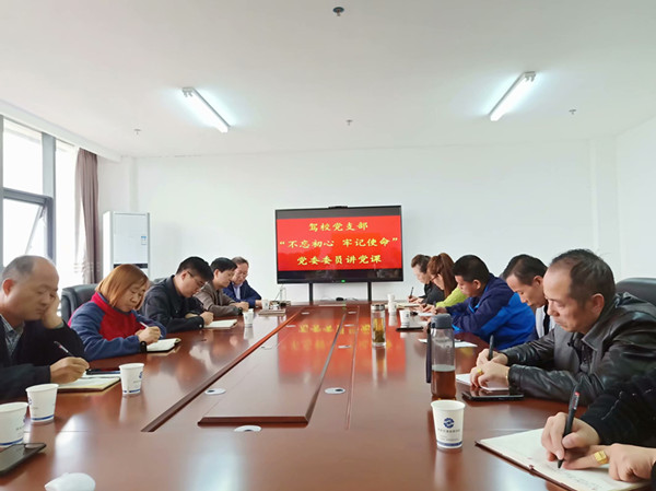 根据学院“不忘初心、牢记使命”主题教育工作安排,10月14日,院党委委员、副院长苏东阳同志以“不忘初心、牢记使命”努力做好职业教育工作为题,为驾校支部全体党员干部以及所辖部门职工 讲了一堂生动的党课。支部结合党委副书记杜建忠和苏副院长的党课内容,组织党员干部进行了“党课”大讨论。院主题教育办公室督导组成员、院长助理董鹏应邀列席会议。